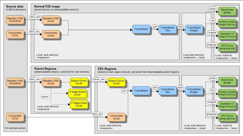 - Bauen der Kartenversionen für GPS, BaseCamp, usw (gmap, nsis, imagedir, gmapsupp)