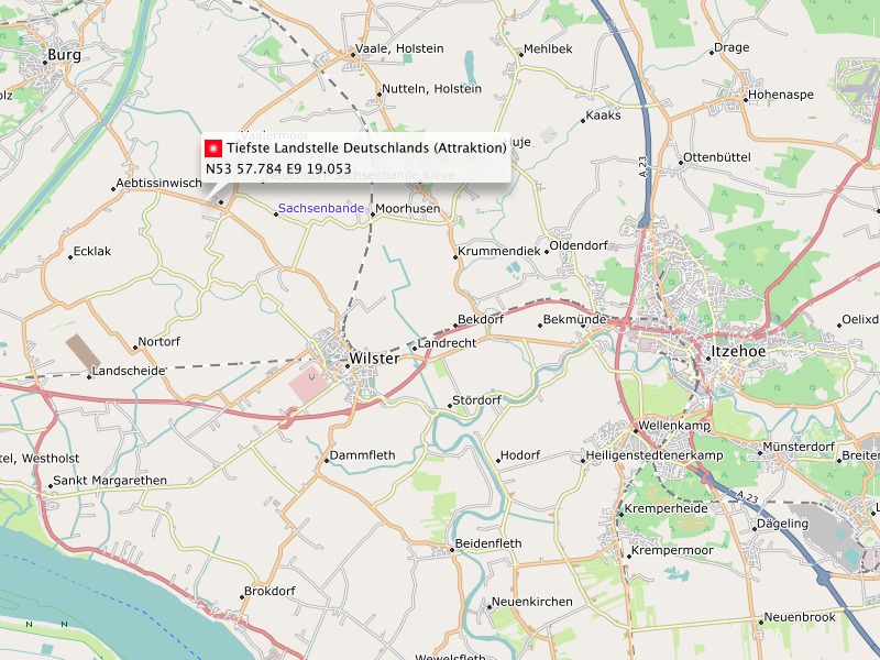 Kartendarstellung in BaseCamp: Der tiefste Landpunkt Deutschlands (-3,54 Meter) bei Neuendorf-Sachsenbande.