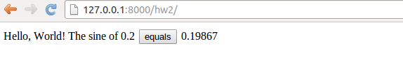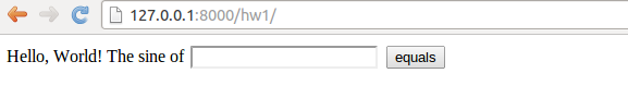 Hello, World! The sine of <input type="text" name="r" id="id_r" />