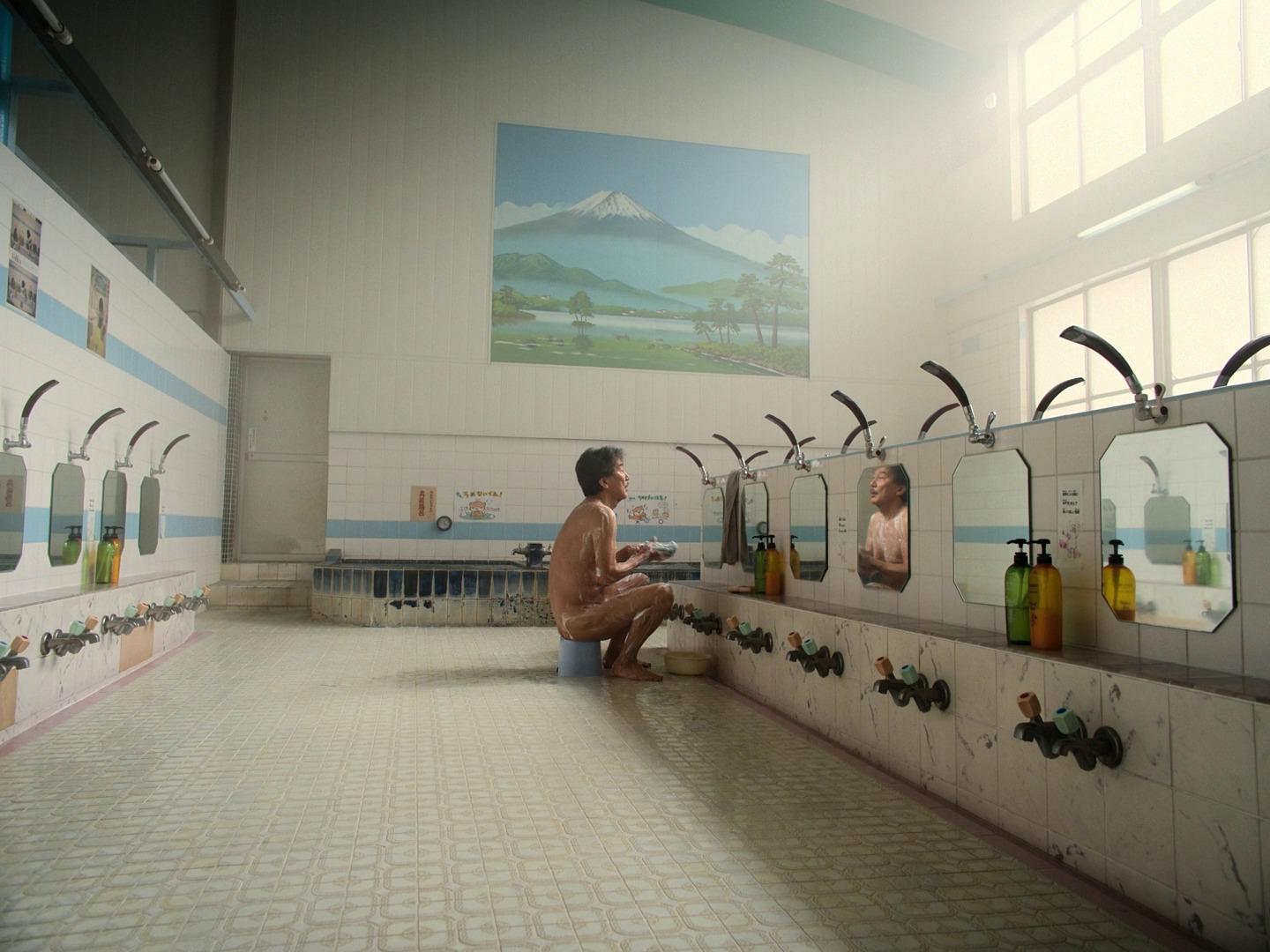 結束白天一絲不苟的勞動工作,他騎上腳踏車,穿過 [跨河大橋](https://www.google.com/maps?q=桜橋(隅田川)) 前往大眾澡堂,洗去一身的汗水與疲憊。