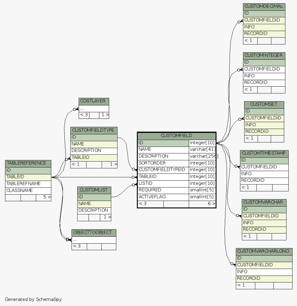 | Table /home/ilopez/git/fishbowldatadictionary/data/Fishbowl2013.5.FDB.CUSTOMFIELD Maintains a list of Custom Fields and their Relationship to Modules