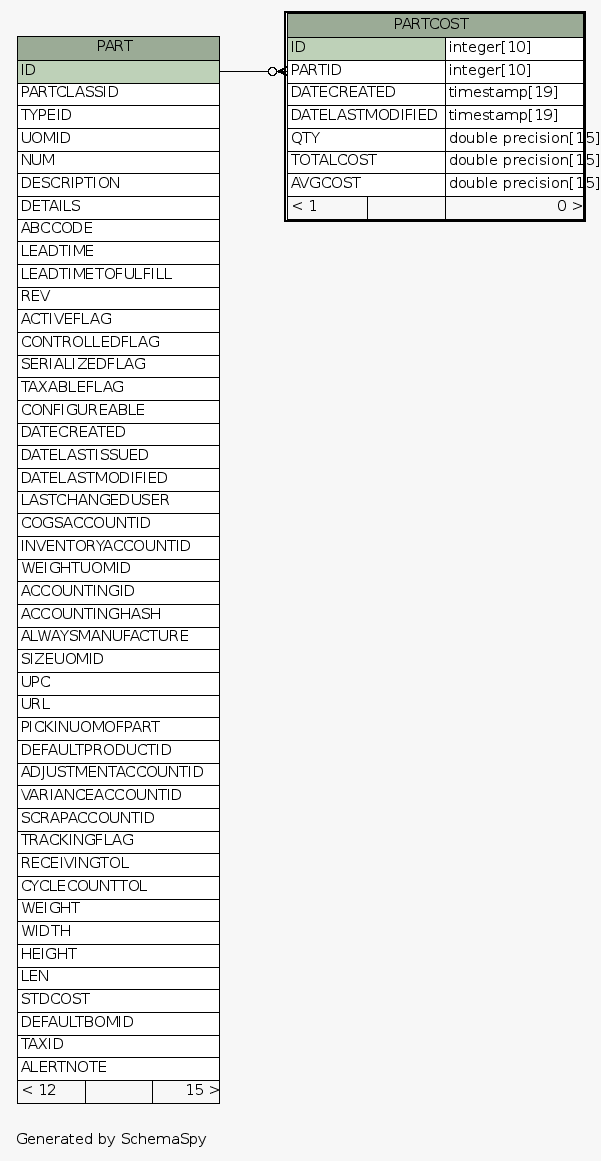 | Table /home/ilopez/git/fishbowldatadictionary/data/Fishbowl2013.5.FDB.PARTCOST Maintains the Part Average Cost and QTY