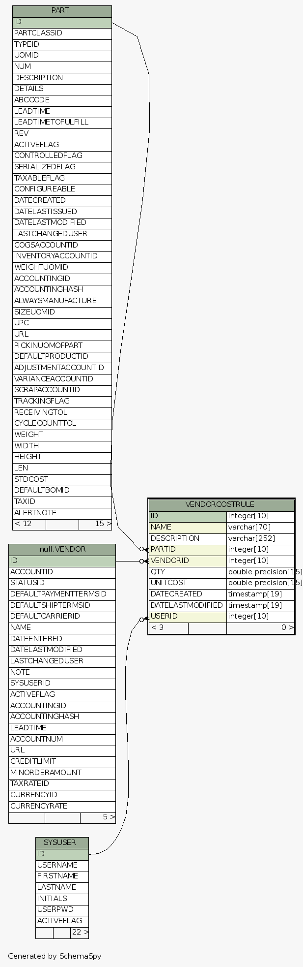 | Table /home/ilopez/git/fishbowldatadictionary/data/Fishbowl2013.5.FDB.VENDORCOSTRULE X