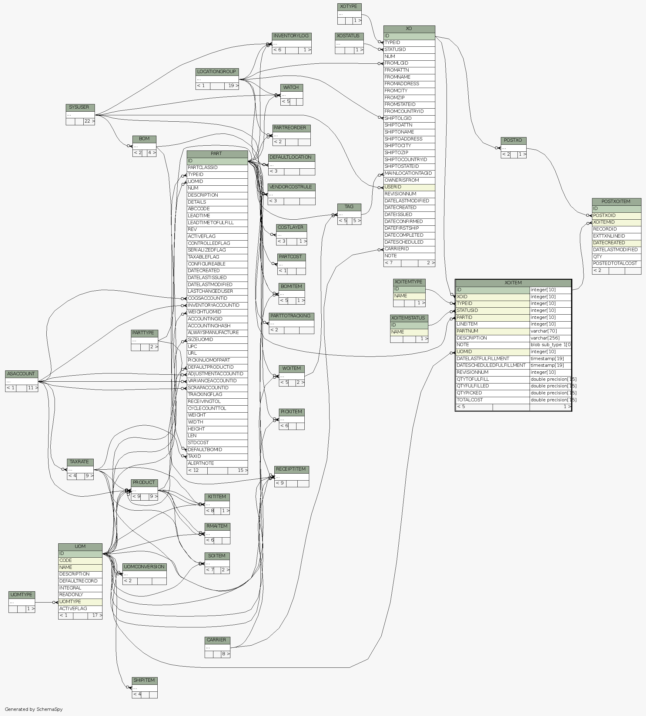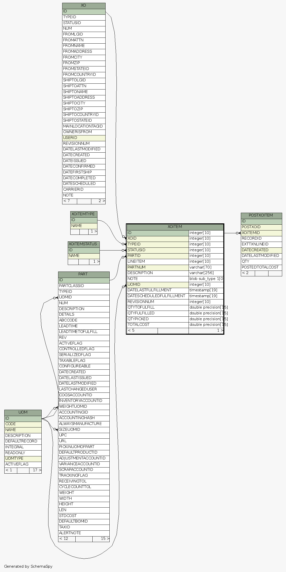 | Table /home/ilopez/git/fishbowldatadictionary/data/Fishbowl2013.5.FDB.XOITEM X