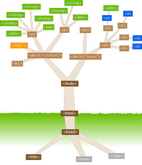 - Source code of webpages (HTML) structures both layout and content.