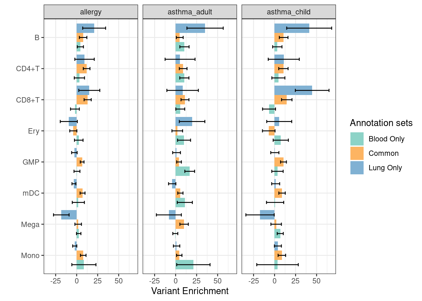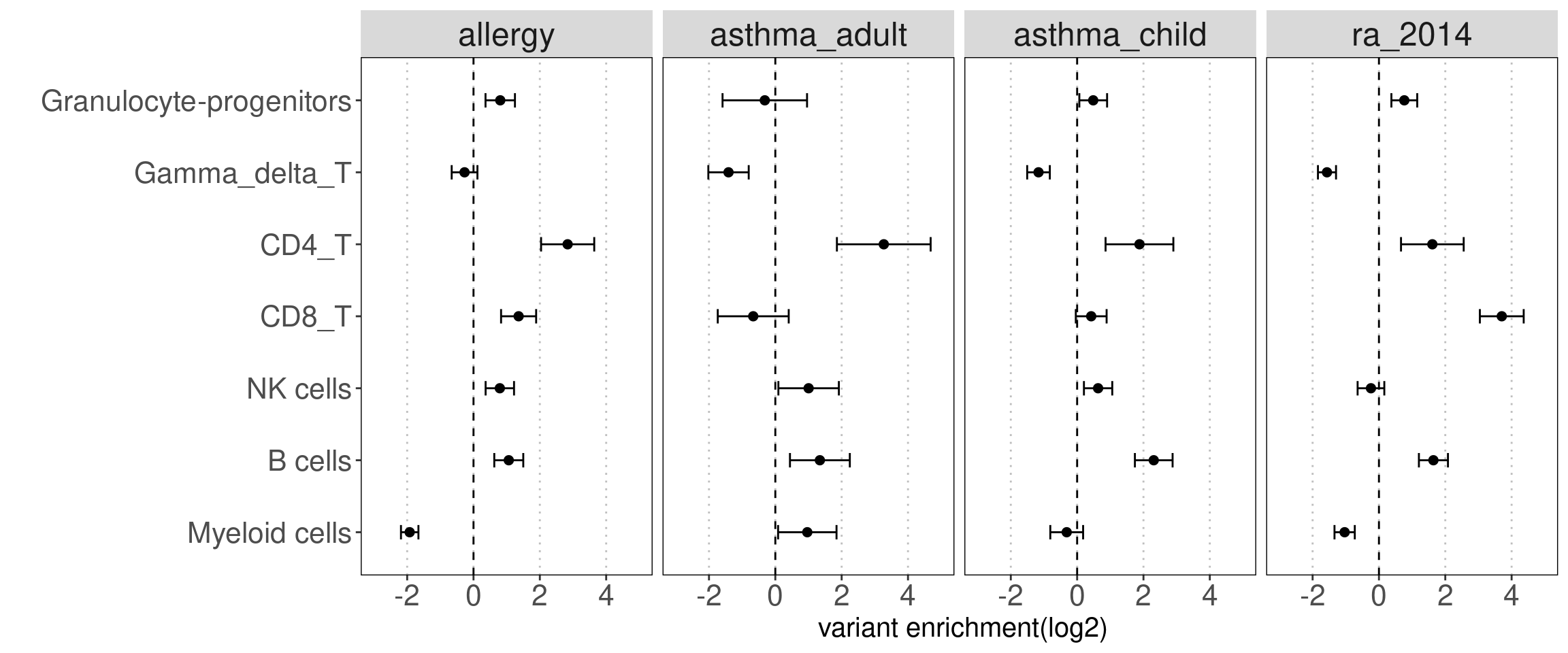 Consistent with prior knowledge, we see enrichment of granulocyte progenitors with genetic risk of allergy.