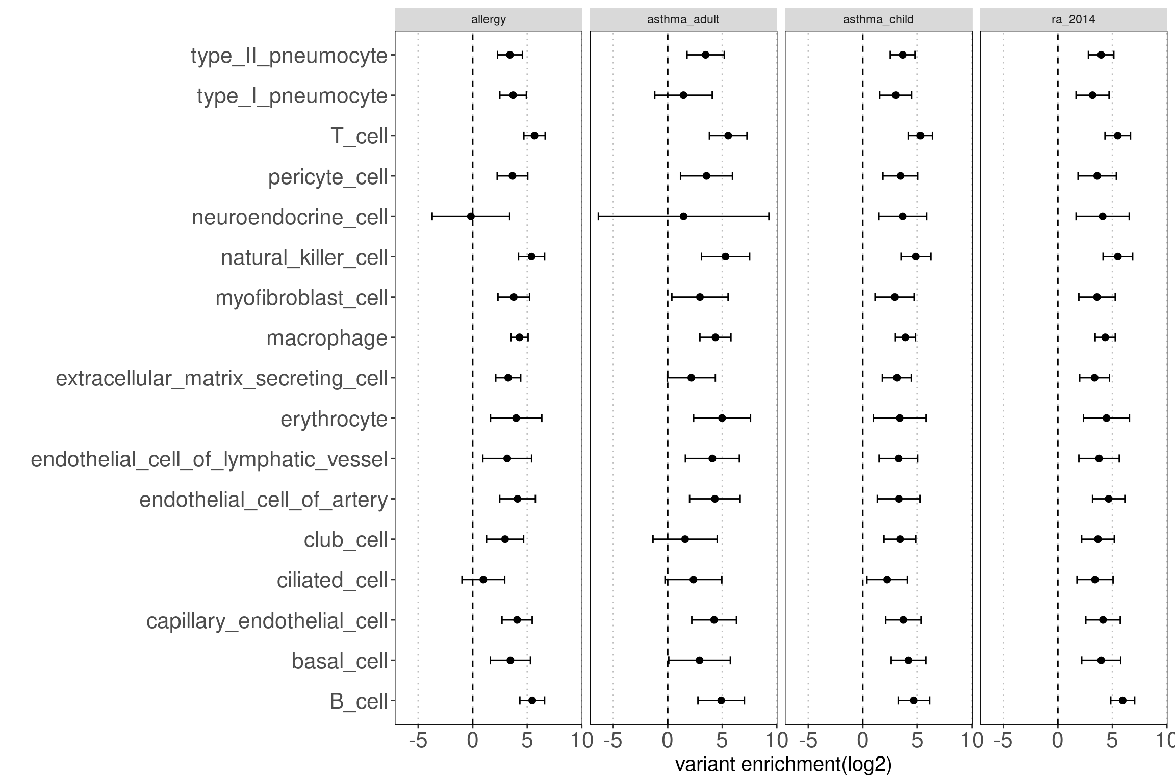 Results: Data look good as the open chromatin regions of most cell types in lungs are enriched with disease risk variants.
