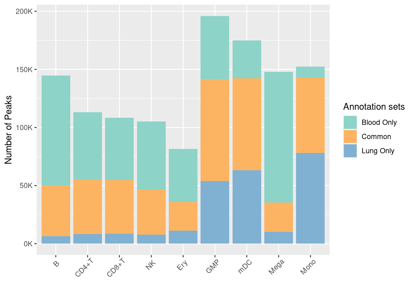Dataset: ATAC-Seq profiles for FACS-sorted cells from human peripheral blood or bone marrow.