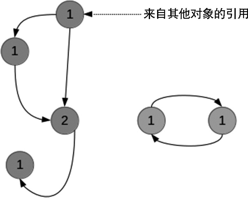 两个对象可能相互引用,从而构成所谓的引用环(Reference Cycle)。