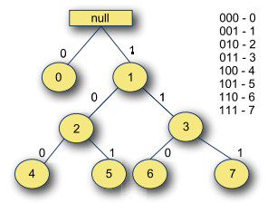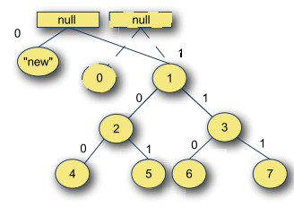 "上图给出了下标为0到7的前缀树,其根节点为空,到达前缀树的指定下标的路径可以由下标数字的二进制表示计算出来。"