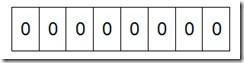 如果说了这么多还没明白什么是Bit-map,那么我们来看一个具体的例子,假设我们要对0-7内的5个元素(4,7,2,5,3)排序(这里假设这些元素没有重复)。那么我们就可以采用Bit-map的方法来达到排序的目的。要表示8个数,我们就只需要8个Bit(1Bytes),首先我们开辟1Byte的空间,将这些空间的所有Bit位都置为0(如下图:)