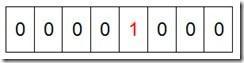 然后遍历这5个元素,首先第一个元素是4,那么就把4对应的位置为1(可以这样操作 p+(i/8)|(0x01<<(i%8)) 当然了这里的操作涉及到Big-ending和Little-ending的情况,这里默认为Big-ending),因为是从零开始的,所以要把第五位置为一(如下图):