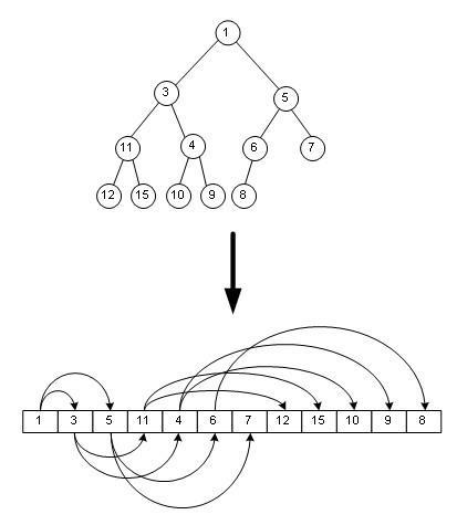 2)树是完全平衡的,并且最后一层的树叶都在最左边这样就定义了一个最大堆。