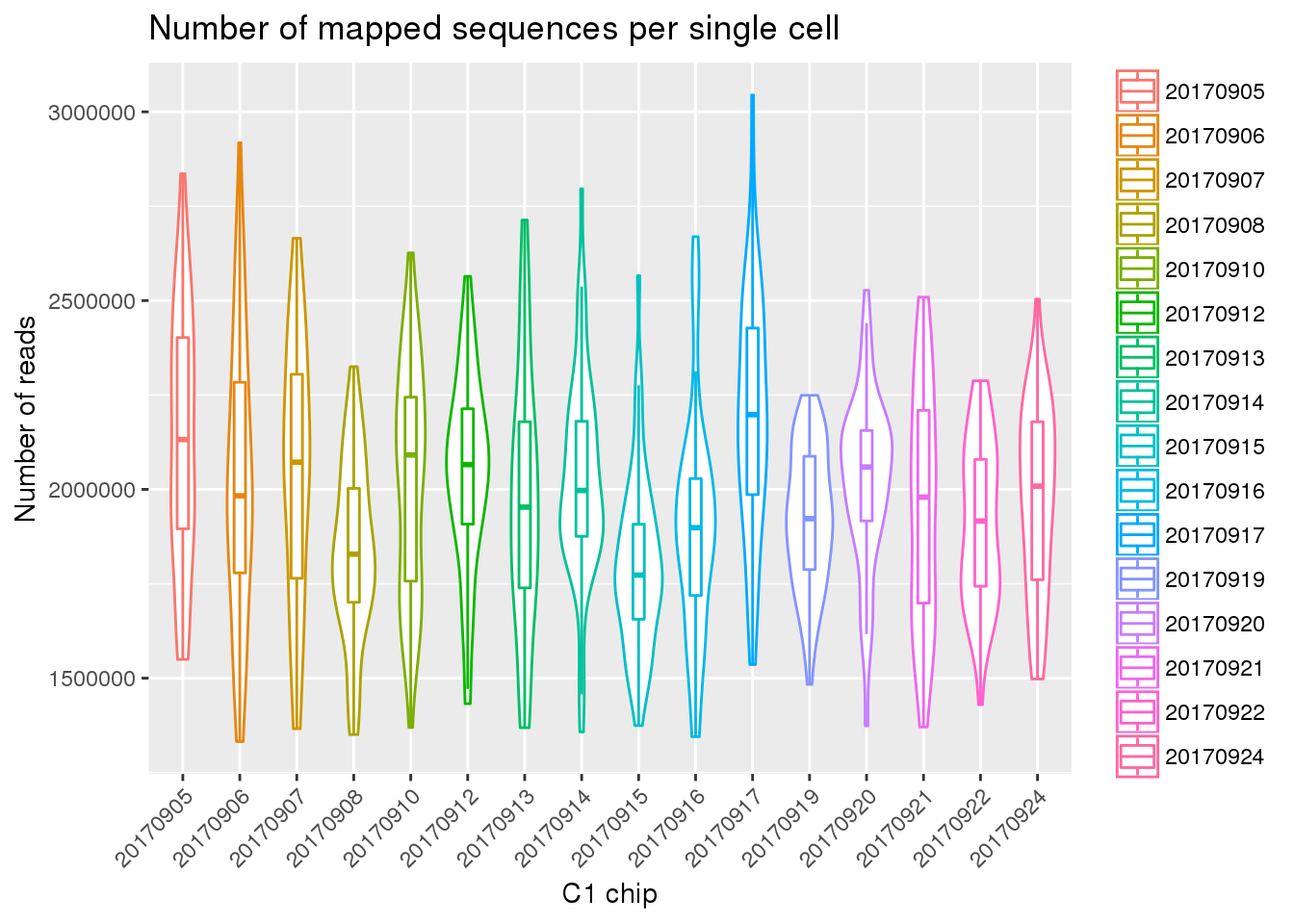 labs(x = "C1 chip", y = "Number of reads",