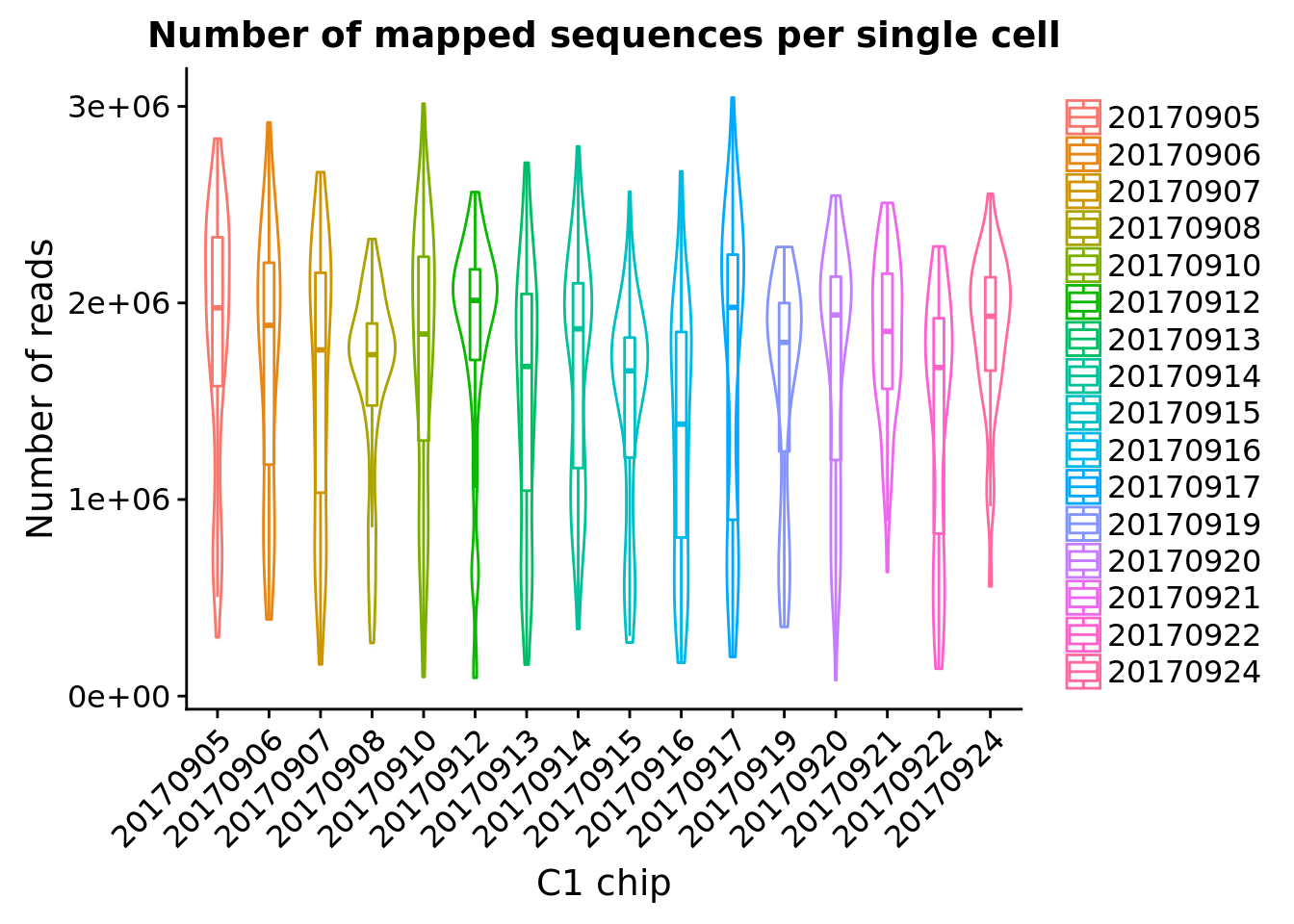 title = "Number of mapped sequences per single cell") +