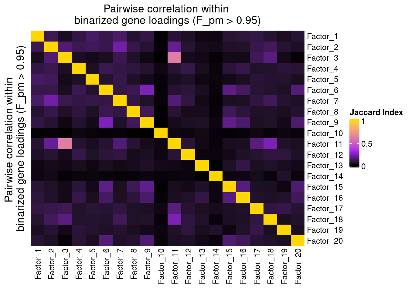 We can also assess the correlations between each pair of perturbation and inferred factor.