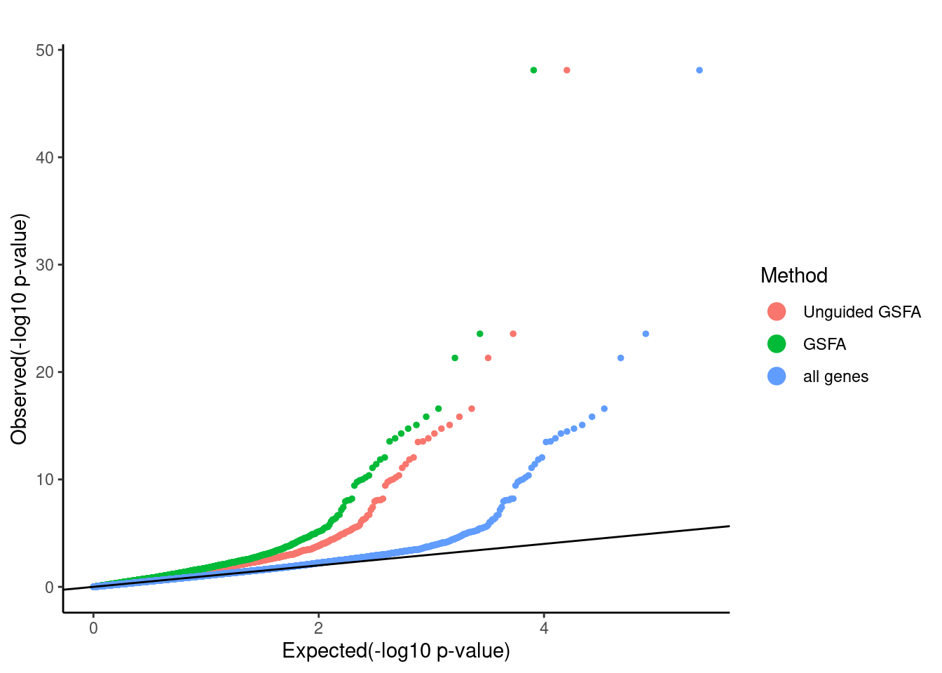 pvalue_list <- list('Unguided GSFA'=dplyr::filter(combined_mast_res,unguided_gsfa_gene==1)$PValue,