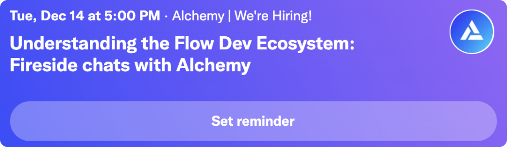 | | | | | | | | | | | | | Fireside chat with Flow and Alchemy Developer Advocates | | | | | | | |