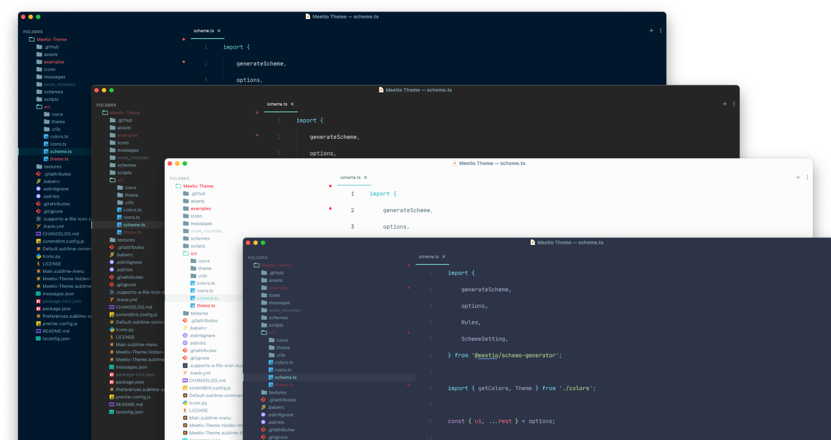 - `Sublime Text → Preferences → Packages Settings → Meetio Theme → Theme Configuration`.