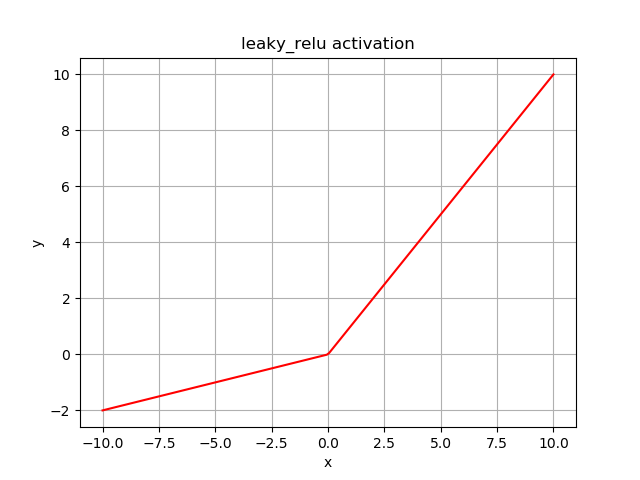 函数表达式: \(y = \left\{ {\begin{array}{ccc}{x,\;\;\;\;\;\;x \ge 0}\\{\alpha x,\;\;\;x < 0}\end{array}} \right.\)