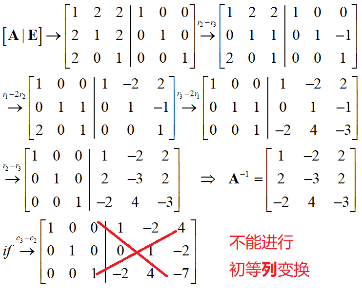 将待求逆矩阵与单位矩阵拼成一个矩阵, 对新矩阵只进行 初等行变换 , 使得待求逆矩阵部分变为单位矩阵, 那么对应的原始的单位阵变为待求逆矩阵的逆, 即