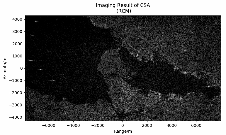 图 4.53 Imaging result of CSA (without SRC, with RCMC)¶