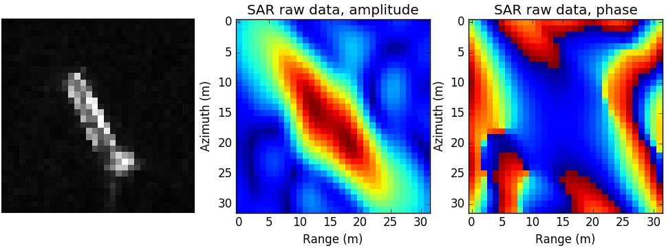 仿真船只场景图及仿真生成点SAR原始数据幅度与相位图如下: