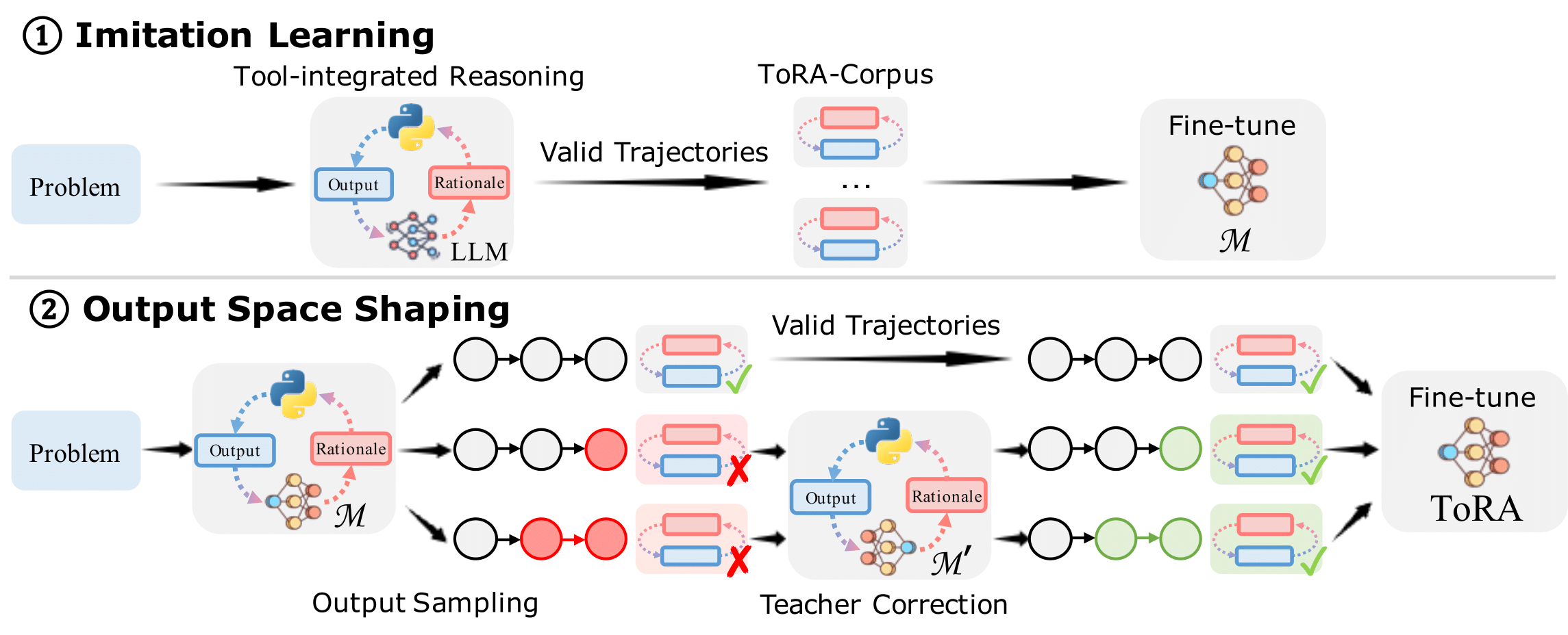 Figure 3: Training ToRA contains ① Imitation Learning, and ② output space shaping.