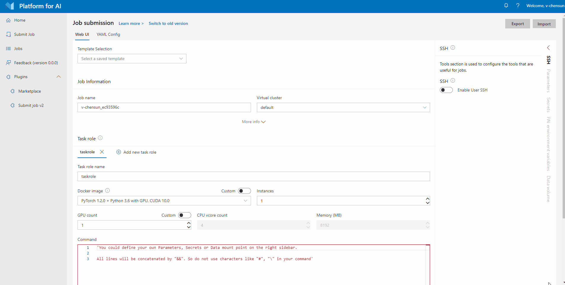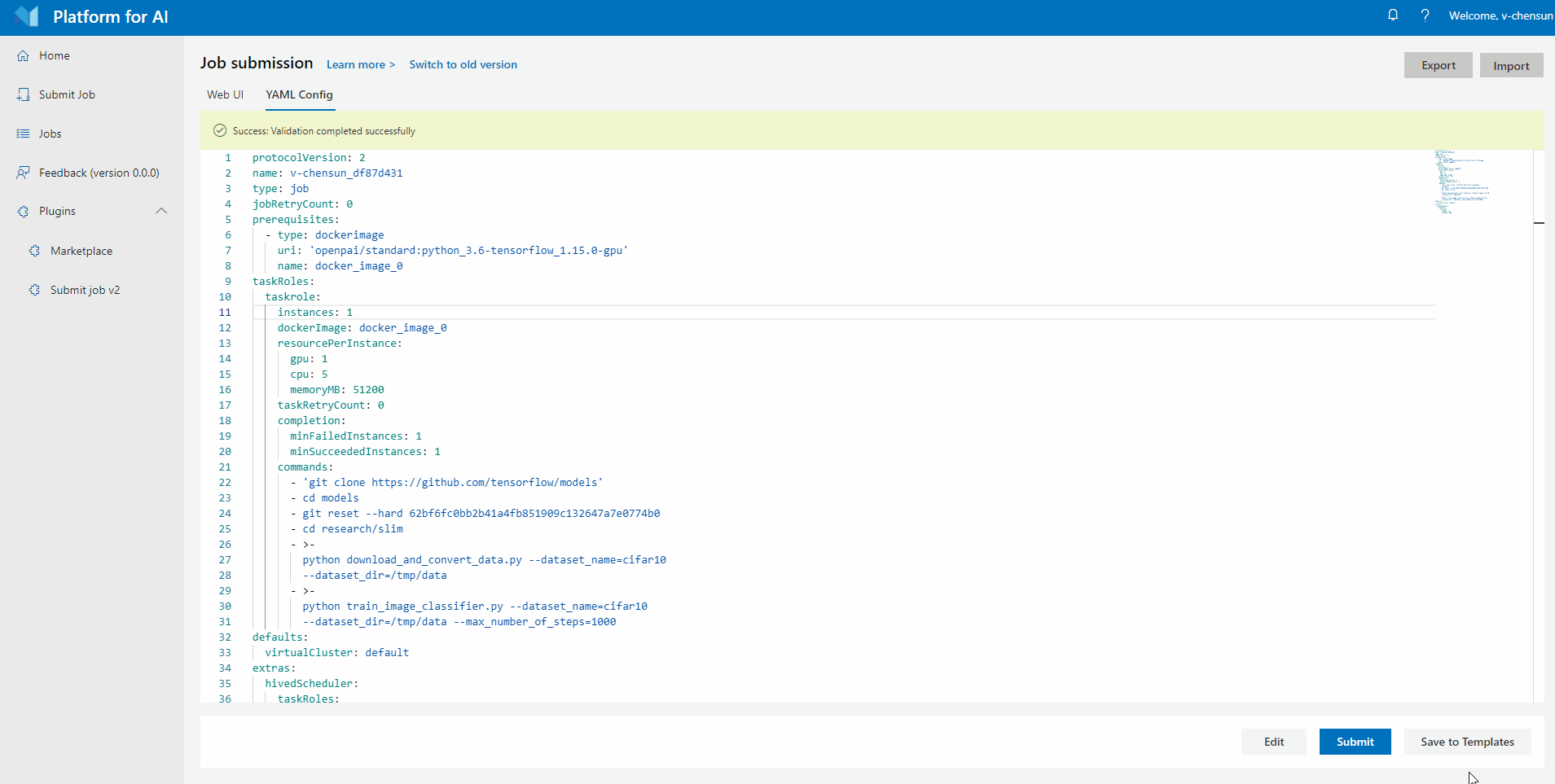 Instead of submitting the job in the old version, you can now switch to the new version to submit the hello world job. The following is a step-by-step guide:
