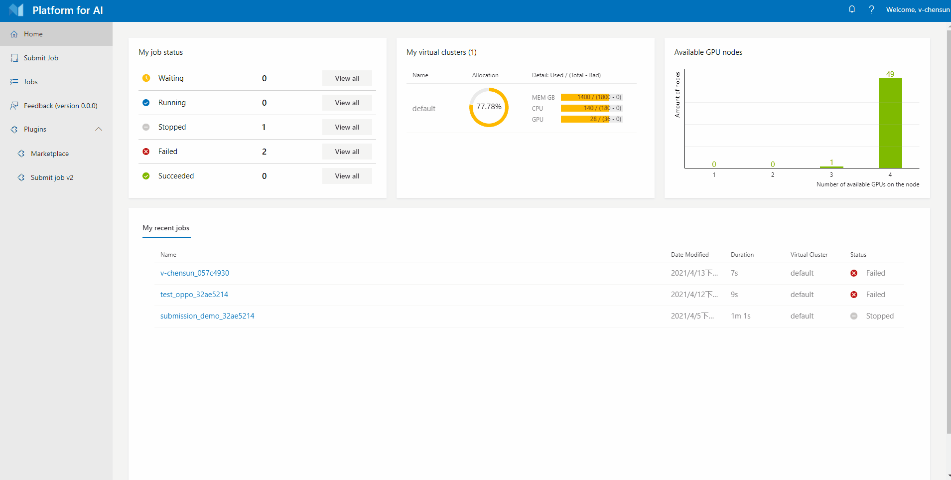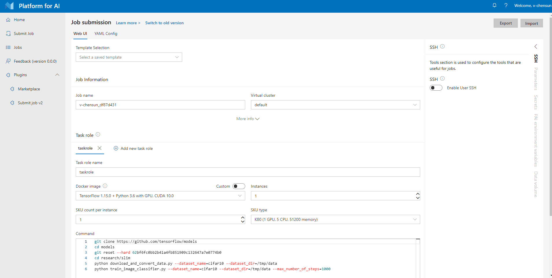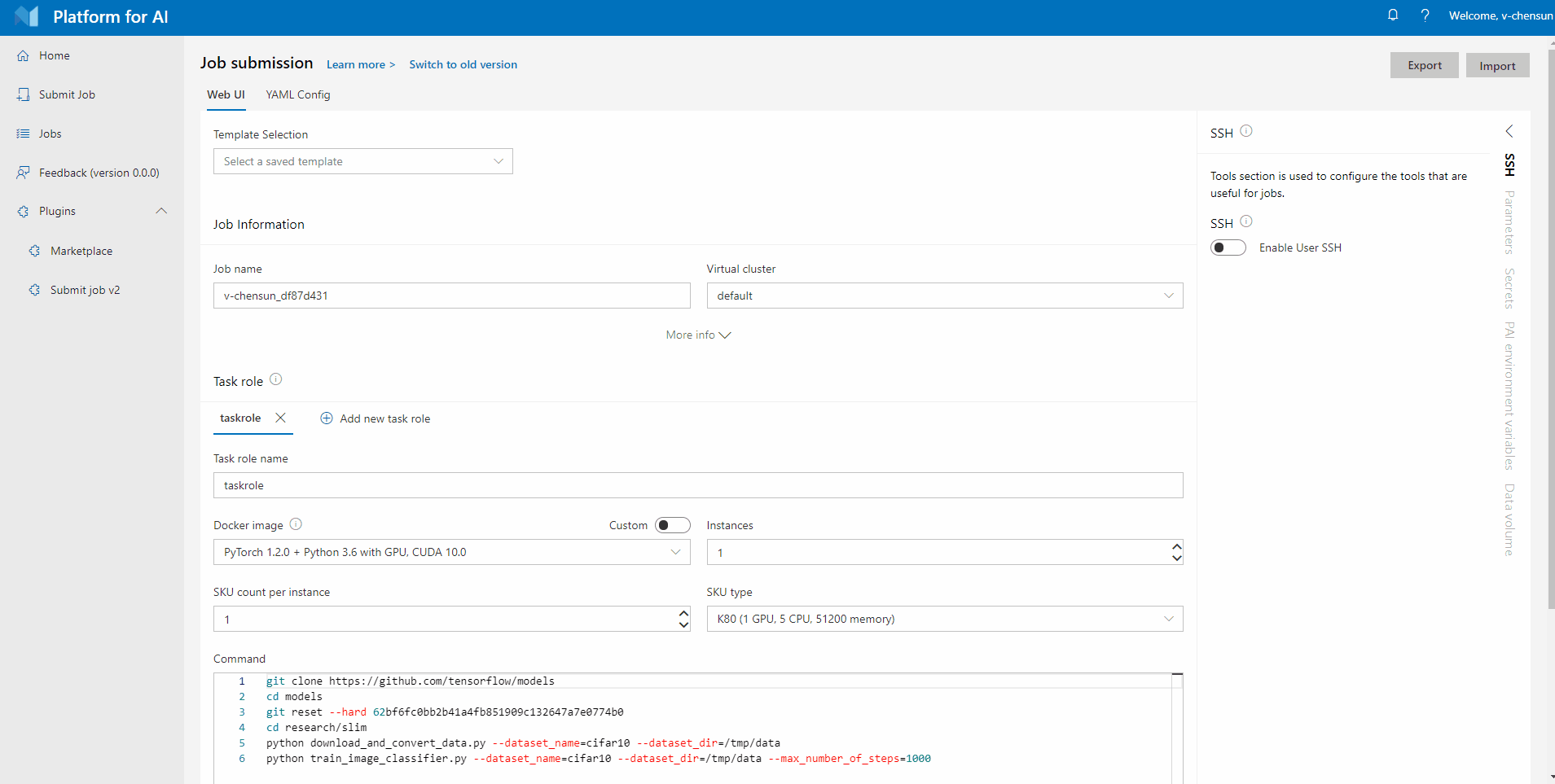> Know Issue: Tensorboard tool is not implemented in the new submission page yet. If you need to use it, please use the old version.