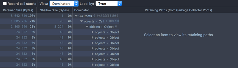 these objects have a relatively tiny \"Shallow Size\", so almost all of