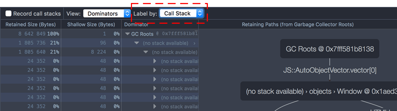 snapshot, then select \"Call Stack\" in the \"Label by\" drop-down.