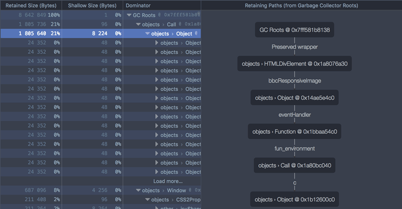 (new in Firefox 47) shows the 5 shortest retaining paths for a