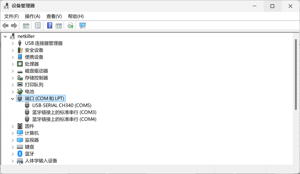 进入Windows 设备管理器,查看COM口设备信息