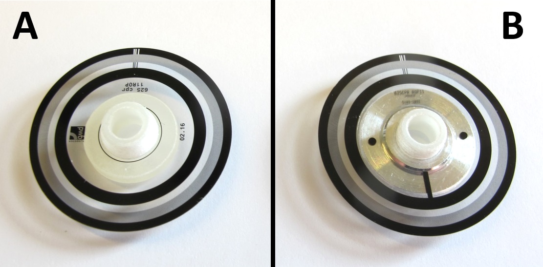 A: Code wheel ordered from PWB / B: Code wheel from encoder kit.