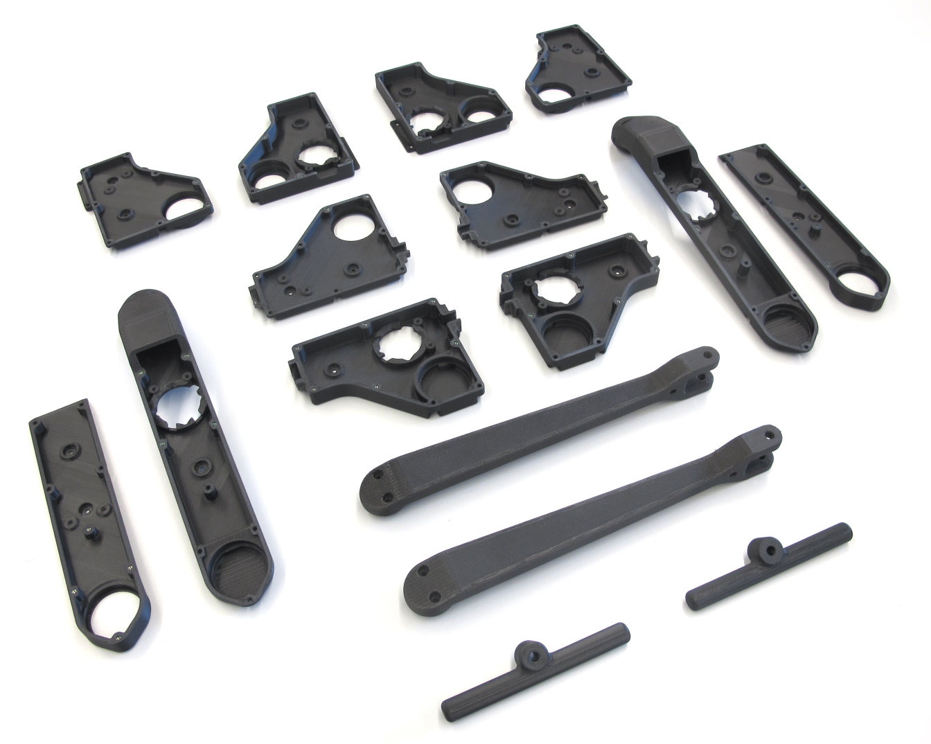 * alternatively the lower legs can be printed on a [Markforged printer](https://markforged.com/3d-printers/onyx-pro) with internal fiber reinforcement