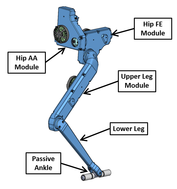 This page describes the legs that are used for the [Biped Robot 6dof](../biped_6dof_v1/README.md#biped-robot-6dof-v1). Each leg has 3 torque-controlled degrees of freedom and a passive ankle joint.
