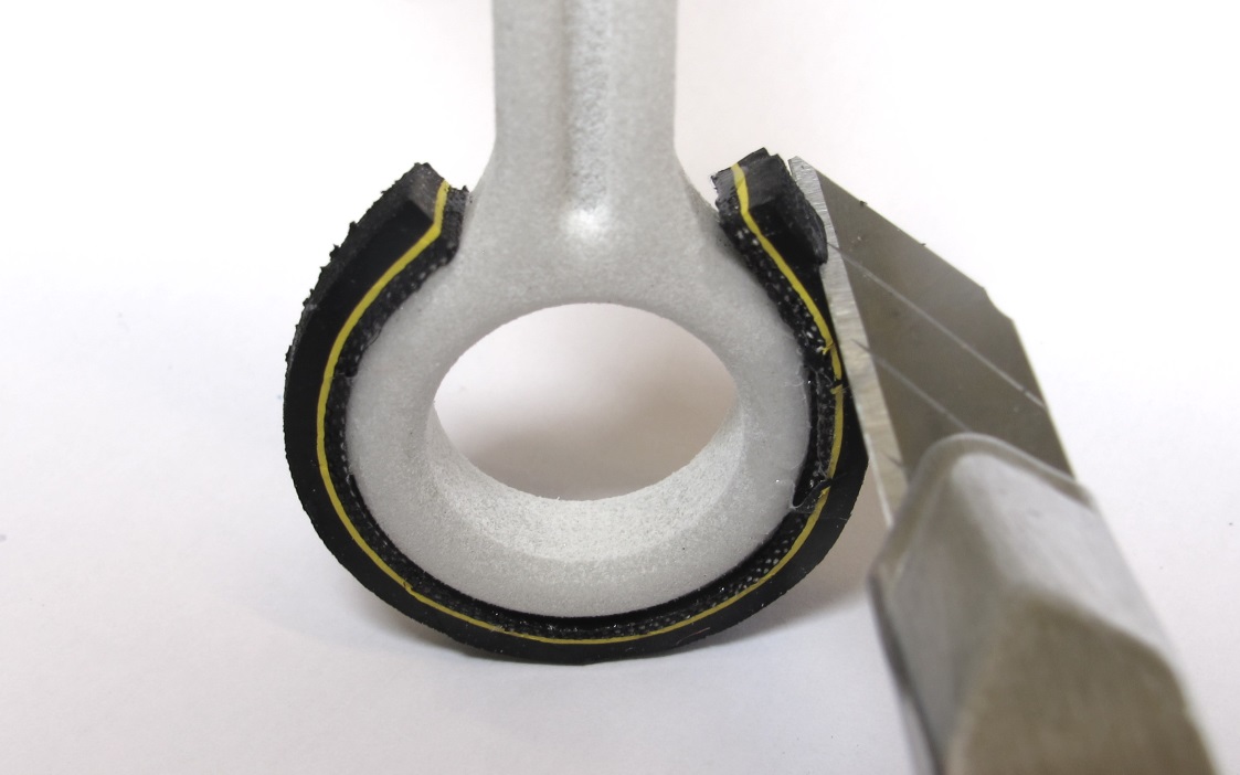 * the foot surface is lined with a piece of thin bicycle tire