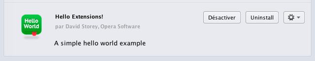 From Opera 15 onward, Opera 11 & 12’s extension format is no longer supported, and instead, we’ve switched to Chromium’s extension model. Check out our new documentation for developing extensions for Opera 15 and higher and start building your own extensions.