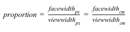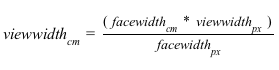 In our case viewwidthpx is the width of the canvas, facewidthpx is the width of the face on the canvas, and we assume facewidthcm is around 17 cm.