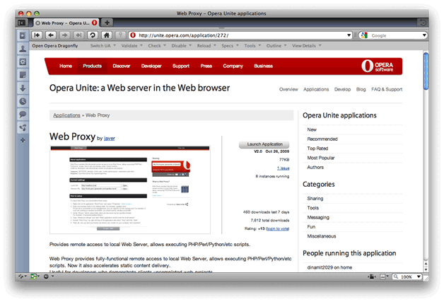 Figure 10: An Opera Unite application on the Opera Unite home page