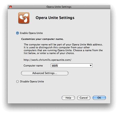 This name is basically your computer’s identity on the Opera Unite system — this is the URL that your contacts can go to if they want to make use of your Opera Unite applications, and share them with you.