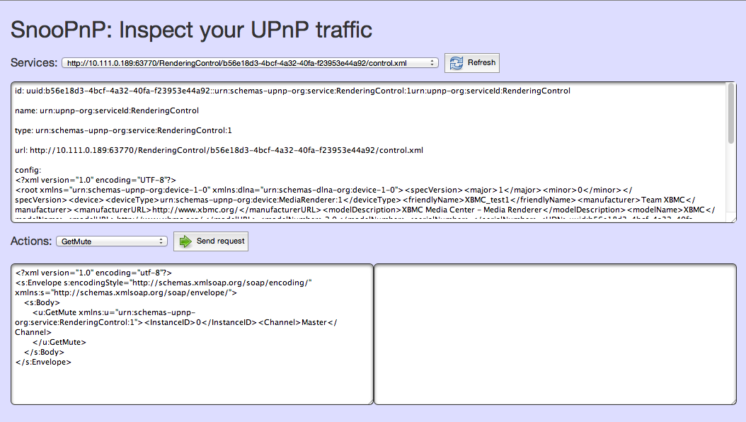 We've prepared a couple of simple demos to demonstrate the discovery concept. The first is a media player demo which acts as a middle-man between media servers and renderers The second is a web-based UPnP inspector so you can monitor and edit messages to and from UPnP devices. Of course, to test these out you need UPnP services available on your network. Wikipedia has an extensive list of UPnP media servers and clients, both hardware and software.