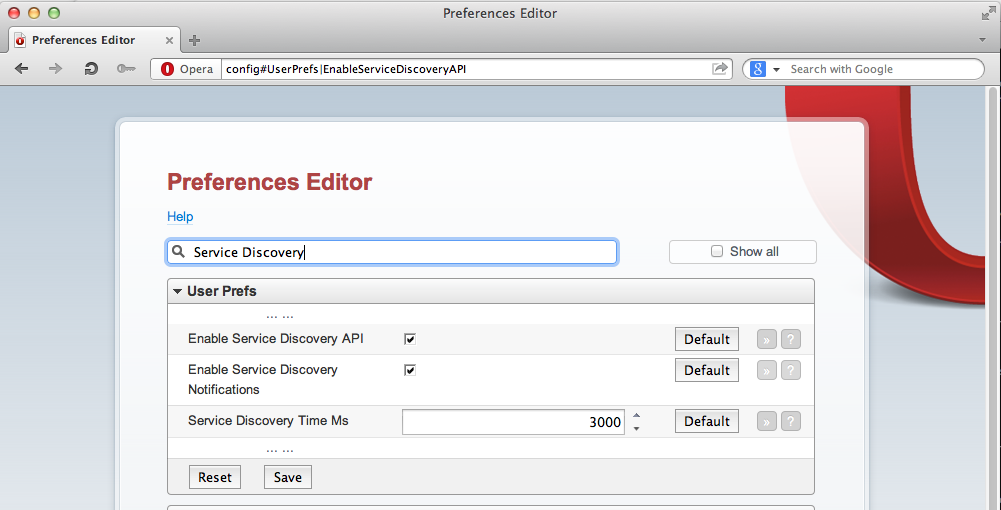 - We are not currently shipping a user interface for this so you will need to set the opera:config#UserPrefs|EnableServiceDiscoveryAPI flag to enable this API.