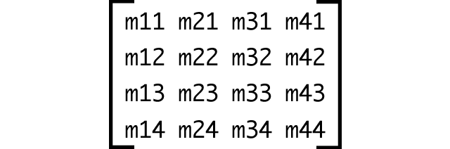 matrix3d() is just a way to declare a 4-by-4 transform matrix using CSS. For two-dimensional transforms, you can use the matrix() or matrix3d() functions; three-dimensional transforms must use the latter. The matrix3d() function accepts 16 arguments. Those arguments correspond to the matrix values m11 through m44.