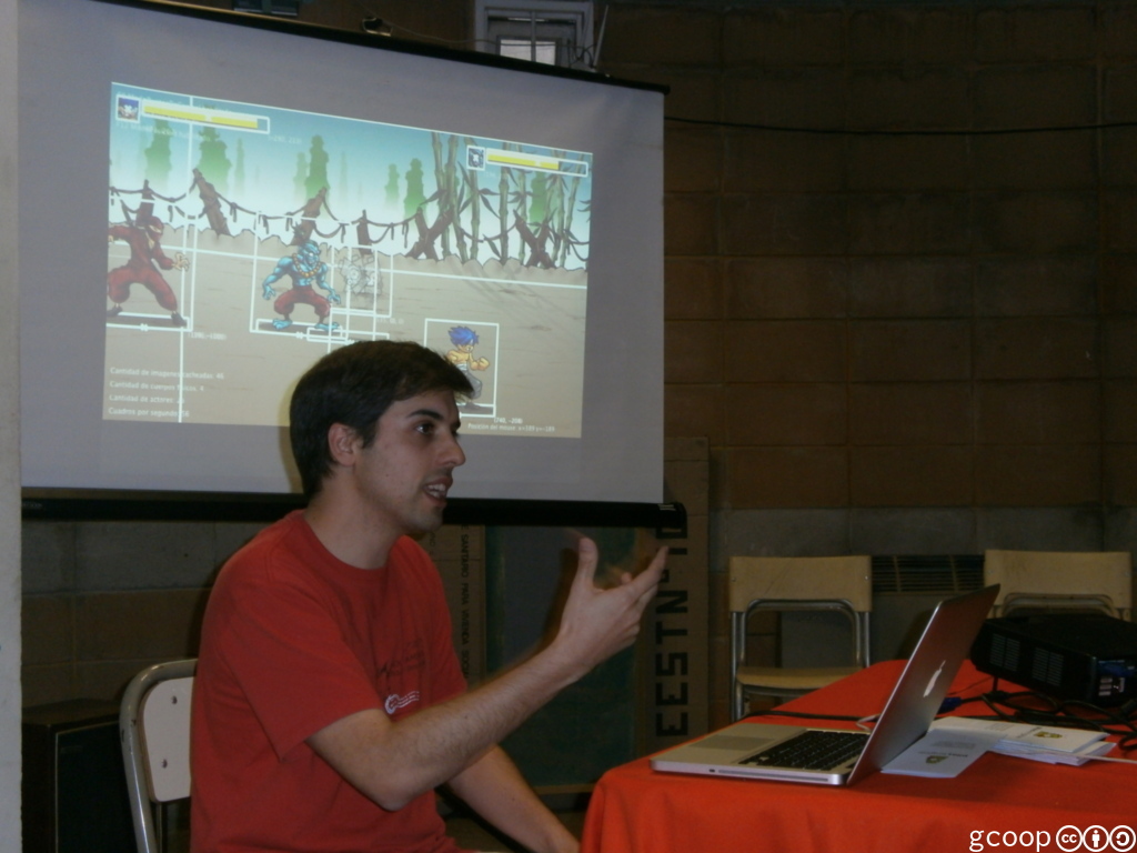 Una de las mejores charlas fue la de Hugo Ruscitti mostrando Pilas Engine 10 que es un framework para el desarrollo de juegos enfocado en aprender a programar.