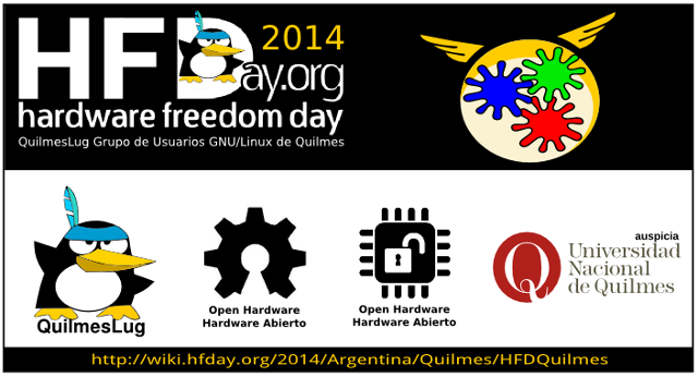 El próximo Sábado 15 de Marzo en el Aula 60 de la Universidad Nacional de Quilmes (Roque Saénz Peña 352, Bernal, Quilmes, Pabellón Aulas Sur, Planta Baja) Se realizará el Día de la Libertad del Hardware Edición 2014.