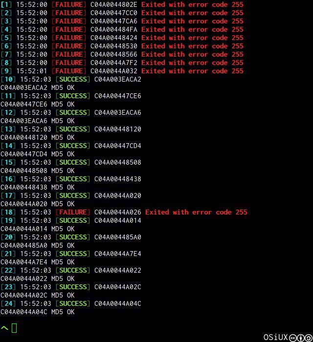 time dd if=pendrive.raw | tee >(dd of=/dev/sdc) | (dd of=/dev/sdd) 15646720+0 registros leídos 15646720+0 registros escritos 8011120640 bytes (8,0 GB) copiados, 2313,62 s, 3,5 MB/s 15646720+0 registros leídos 15646720+0 registros escritos 8011120640 bytes (8,0 GB) copiados, 2321,35 s, 3,5 MB/s 15646720+0 registros leídos 15646720+0 registros escritos 8011120640 bytes (8,0 GB) copiados, 2326,16 s, 3,4 MB/s real38m46.174s user0m57.744s sys6m4.339s