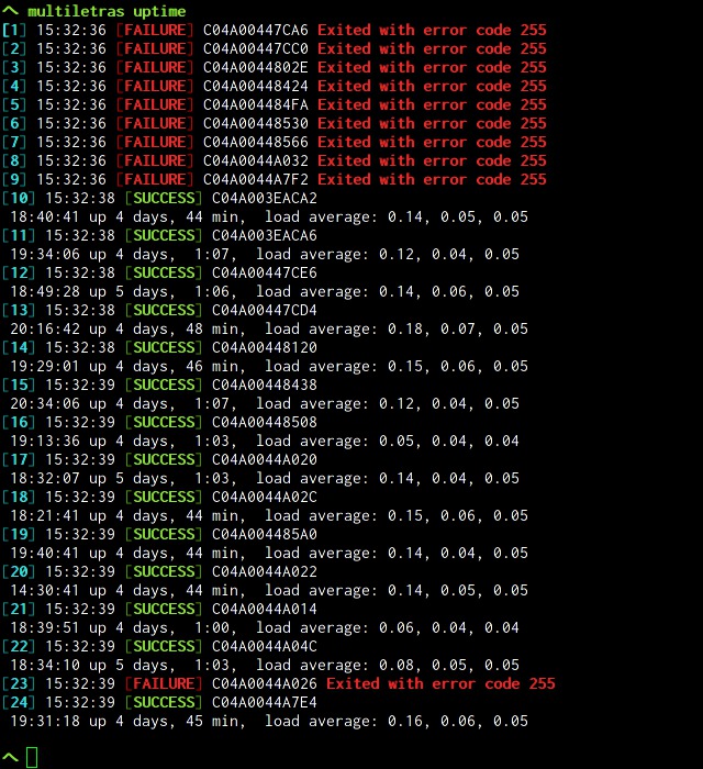 Ahora si, tirando un uptime en todos los equipos, rápidamente