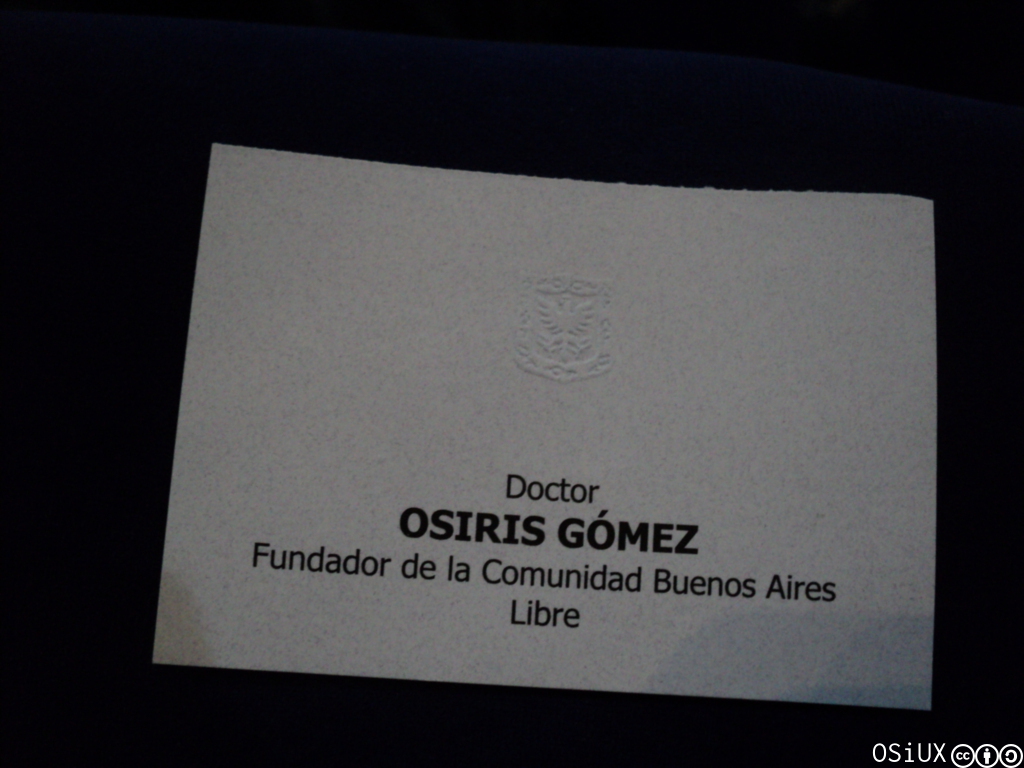 En el auditorio mayor encontré en primera fila una silla con mi nombre y dos sorpresas: al parecer soy doctor y por si fuera poco fundador de BuenosAiresLibre.org 5